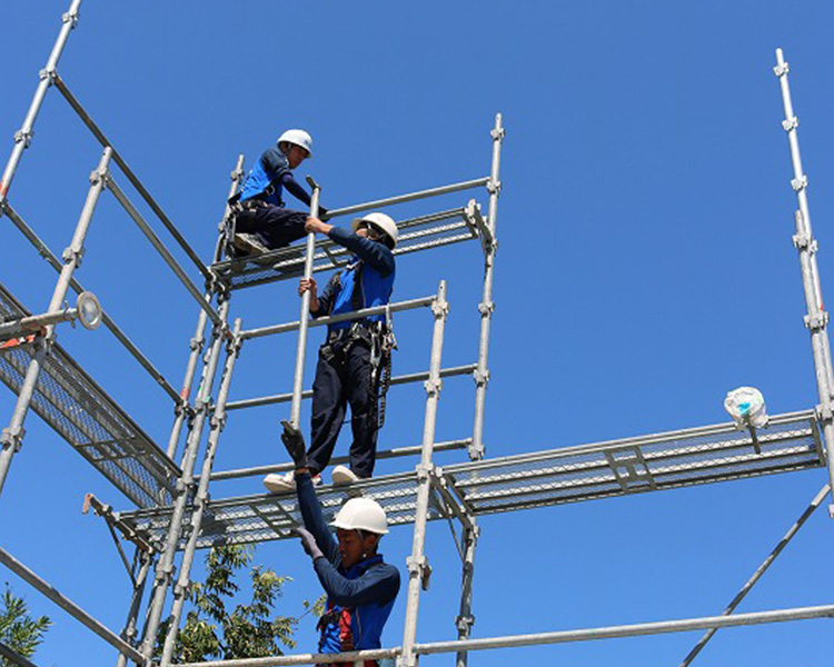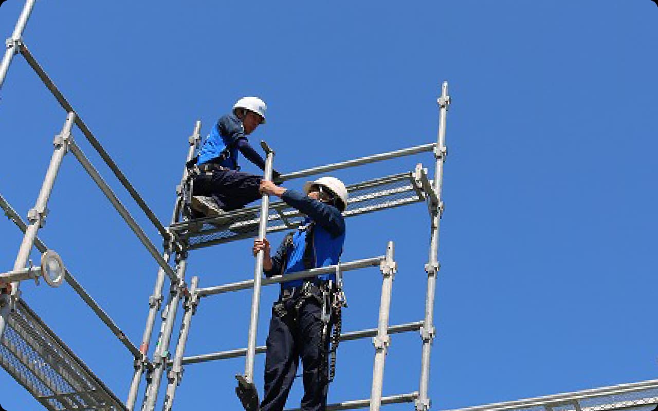 我々は施工中はもちろん、架設期間中もお客様が安心できる足場を提供するため、徹底した安全対策を心掛けて施工を行っています。