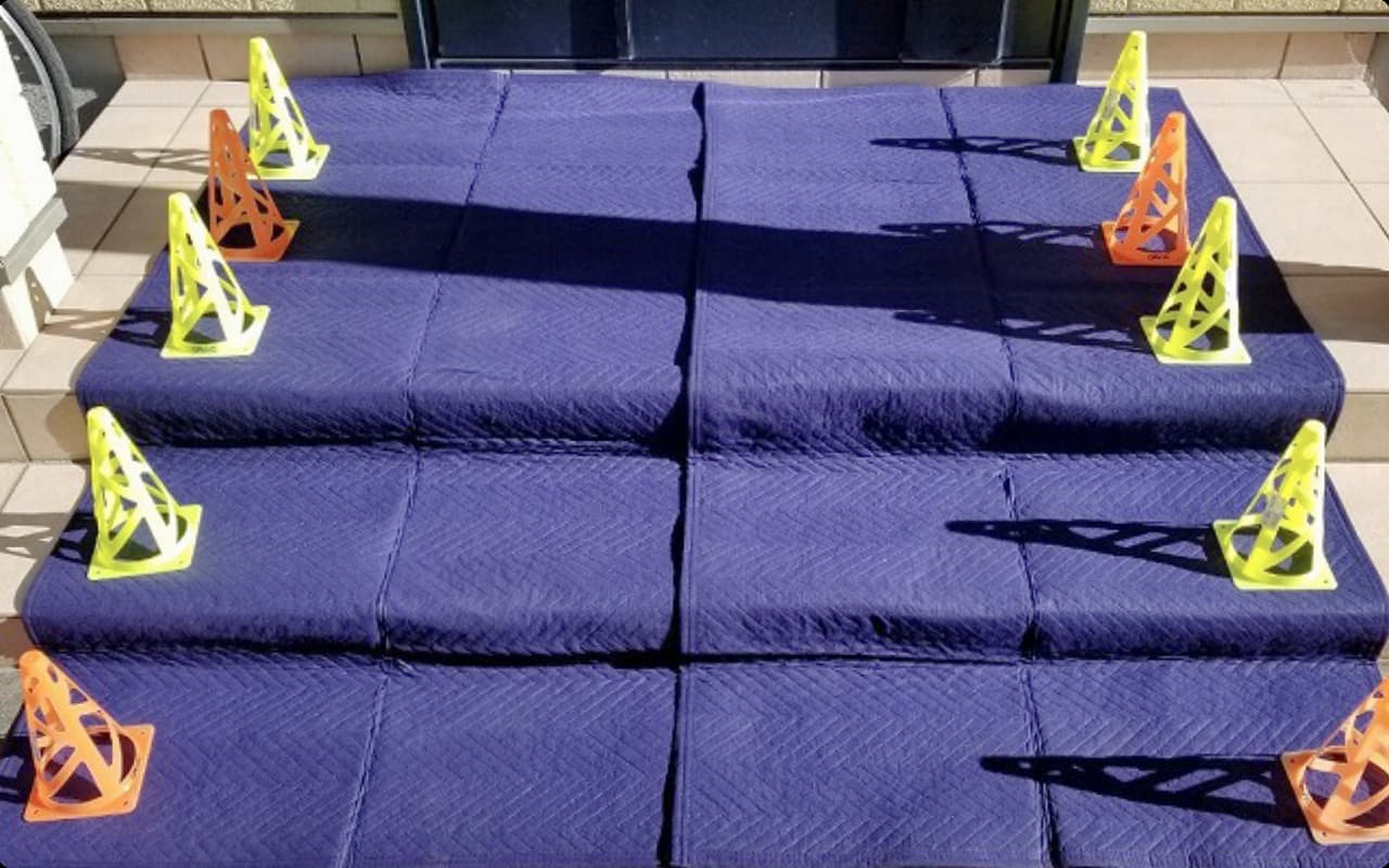 通路確保としてミニコーンを安全な位置に置き、生活に支障のないように配慮しています。