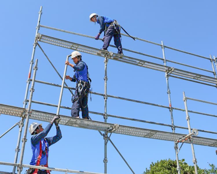 足場の組み立て、解体、有限会社産王商会での業務内容について掲載しています。